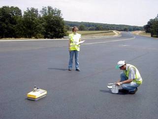 Exemple : pour les mesures de densité des chaussées d’autres moyens existent comme le carottage (c’est une mesure destructive, longue, coûteuse et qui pose des problèmes en couche de roulement. En plus l’information utile, « la densité », n’est pas obtenue instantanément pour une correction éventuelle du processus de mise en œuvre)