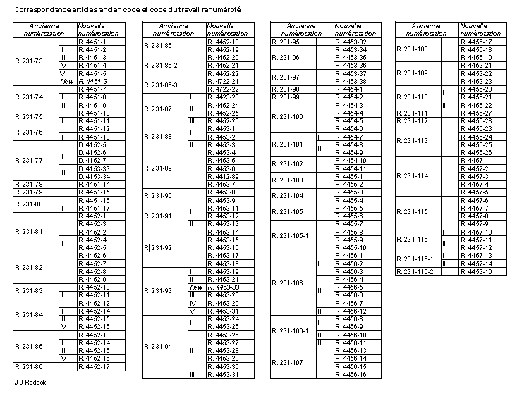 Ce même code du travail a été renuméroté. La dernière version du texte date du 7 mars 2008 (décret n°2008-244).