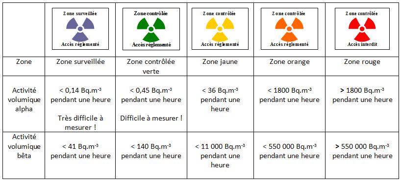 Dans le dernier cas il semble évident qu’un travailleur ne pénétrera pas dans la zone sans avoir mis une protection individuelle adaptée. Il est fort probable que l’exposition interne sera pratiquement nulle. Mais le classement de la zone fera que, de part l’activité à l’intérieur du local, ce sera une zone interdite (ce qui illustre « le changement de culture »).