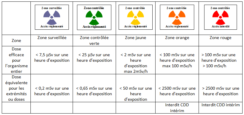 Afin de s’assurer du respect des limites de dose fixées à l’article R. R. 4451-1 du code du travail, , l’ employeur détenteur, à quelque titre que ce soit, d’une source de rayonnements ionisants, met en place les dispositions relatives aux zones surveillées et contrôlées prévues aux articles R. 4451-18 à R. 4451-28 du même code.