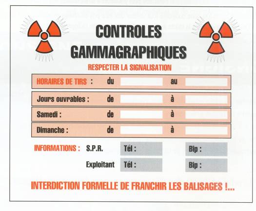 A titre d’exemple voici un type de panneaux utilisés pour les chantiers de gammagraphie :