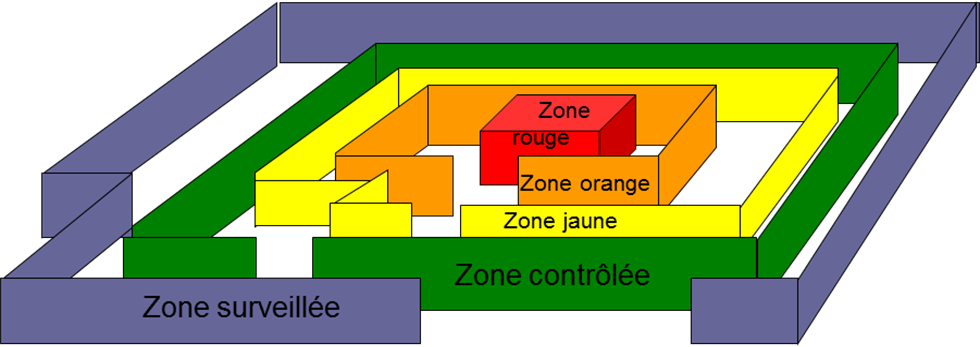 Ce sont donc les contrôles techniques sur les sources et les contrôles d’ambiance qui vont permettre de réaliser le zonage. On peut donc dire que les zones réglementées vont être définies en fonction des risques présentés par les sources de rayonnements. C’est un changement culturel dans le domaine de la radioprotection qui s’opère car jusqu’à présent on regardait les postes de travail pour définir les zones. On va donc s’attacher uniquement à la source de rayonnements pour définir la zone.