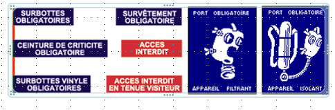 Cet affichage comporte également les consignes de travail adaptées à la nature de l'exposition et aux opérations envisagées.